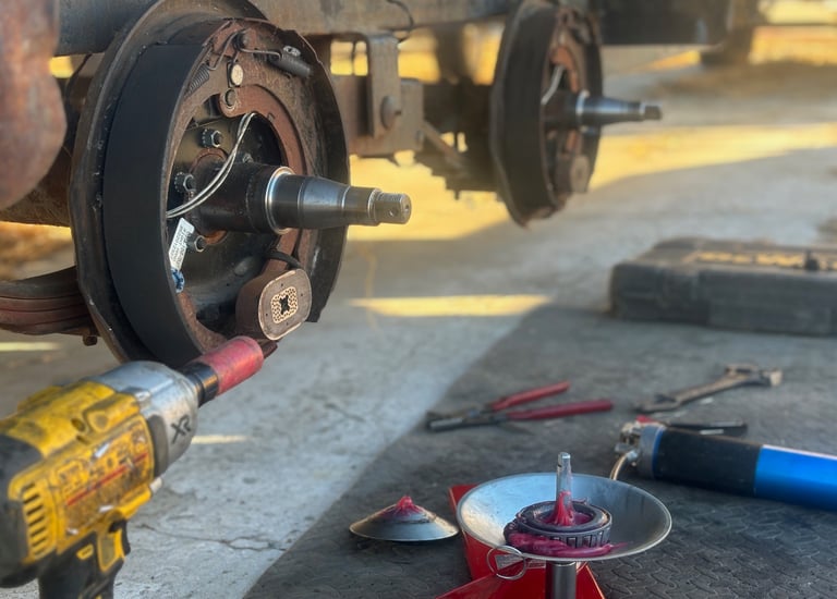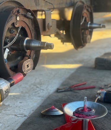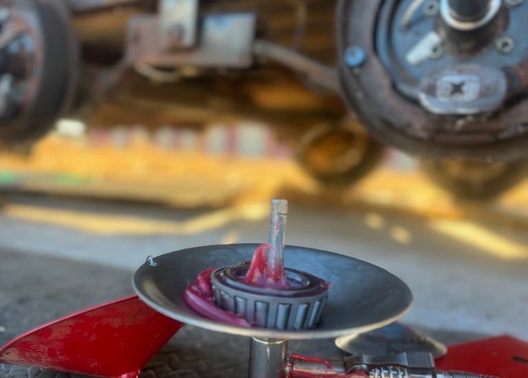 Neglected axles are the leading cause of bearing failure — when a bearing goes out on the road, it can destroy your hub, spindle, wheel, and leave you stranded with an expensive roadside repair. In every axle service, we remove the hubs, clean and inspect the bearings, repack them with fresh grease, check the brakes, and inspect the overall axle condition — giving you peace of mind that your trailer is ready for the miles ahead. Axle service is $195 per axle for 3,500 lb axles and $225 per axle for up to 7,000 lb axles.