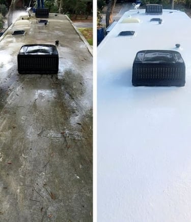 Failing to inspect and maintain your roof seals yearly can lead to hidden water leaks that cause rot, mold, and costly structural damage. A small crack in a seal can quietly turn into thousands of dollars in repairs. With every roof inspection, we clean and inspect roof seals, identify any problem areas, and perform minor touch-ups to prevent leaks before they start. If we find seals that are beyond repair or a roof that’s ready for coating, we’re fully equipped to handle complete seal replacement or apply a protective roof coating to keep your trailer dry and protected for years to come. Roof seal touch-ups are $300 for small cracks & minor resealing or $600 for extensive work; if the seals are beyond repair, we’ll recommend full replacement at $32 per foot of trailer. Roof coating is $58 per linear foot.